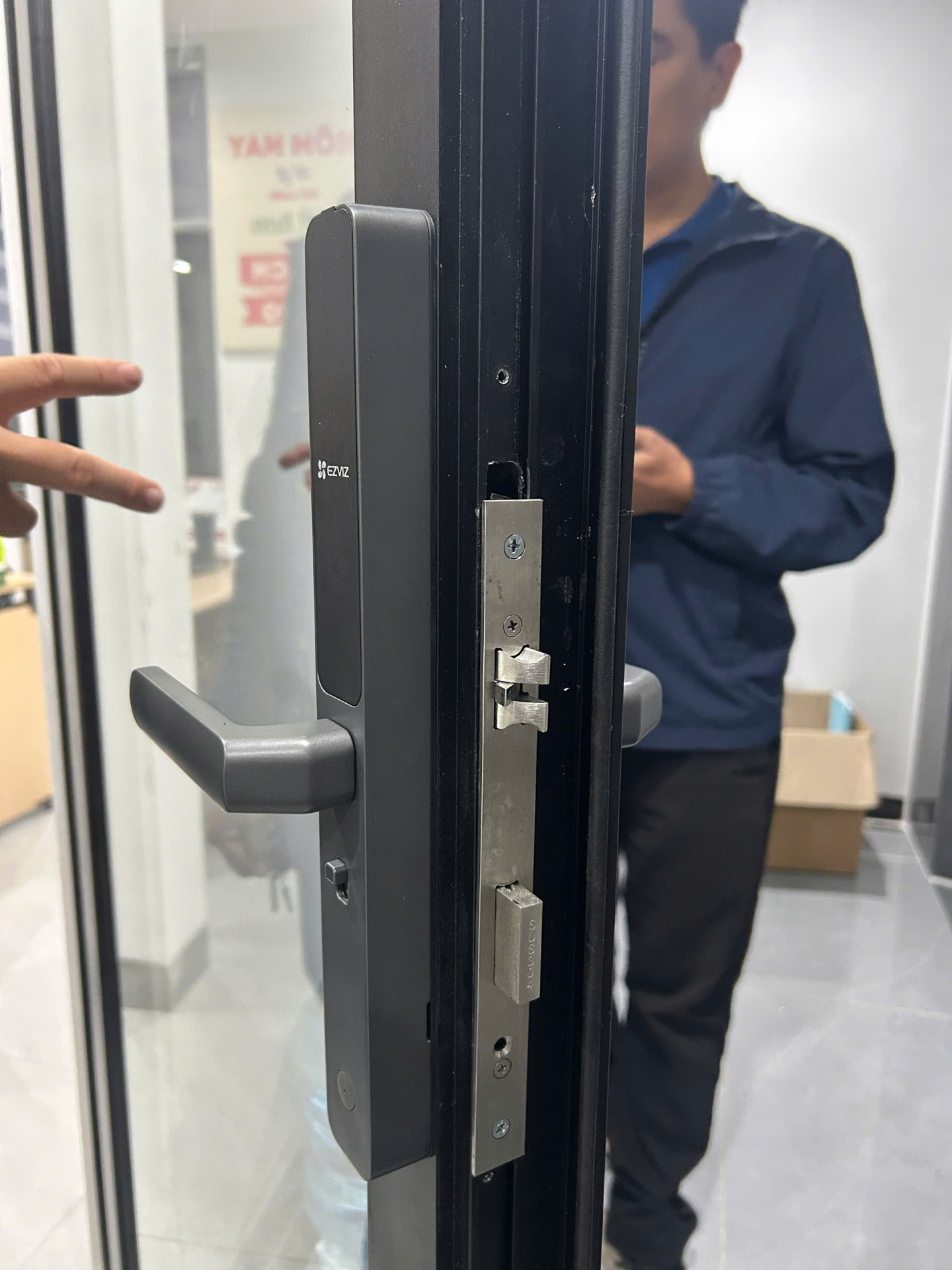 Sau khi khảo sát thực tế kích thước cánh cửa, độ dày nhôm và nhu cầu sử dụng của khách hàng, đội ngũ kỹ thuật PTU đã tư vấn khóa vân tay Ezviz DL06 – dòng khóa được Ezviz thiết kế chuyên biệt cho cửa nhôm kính, cửa nhôm Xingfa.