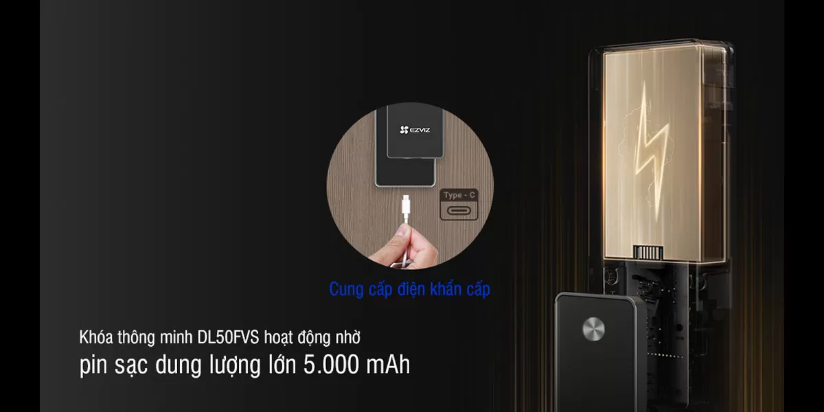Hỗ trợ nguồn điện khẩn cấp: Trong trường hợp hết pin hoàn toàn, bạn có thể sử dụng sạc dự phòng cắm vào cổng Type-C được tích hợp sẵn để kích nguồn tạm thời và mở cửa.