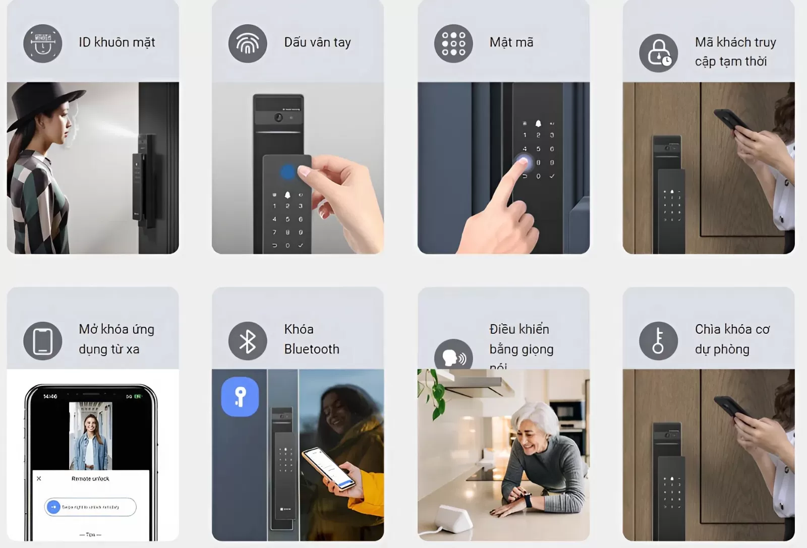 | Các phương thức mở khác | Vân tay, Mật mã, Thẻ từ, Chìa cơ, App EZVIZ, Mã tạm thời, Mở khóa từ xa |
