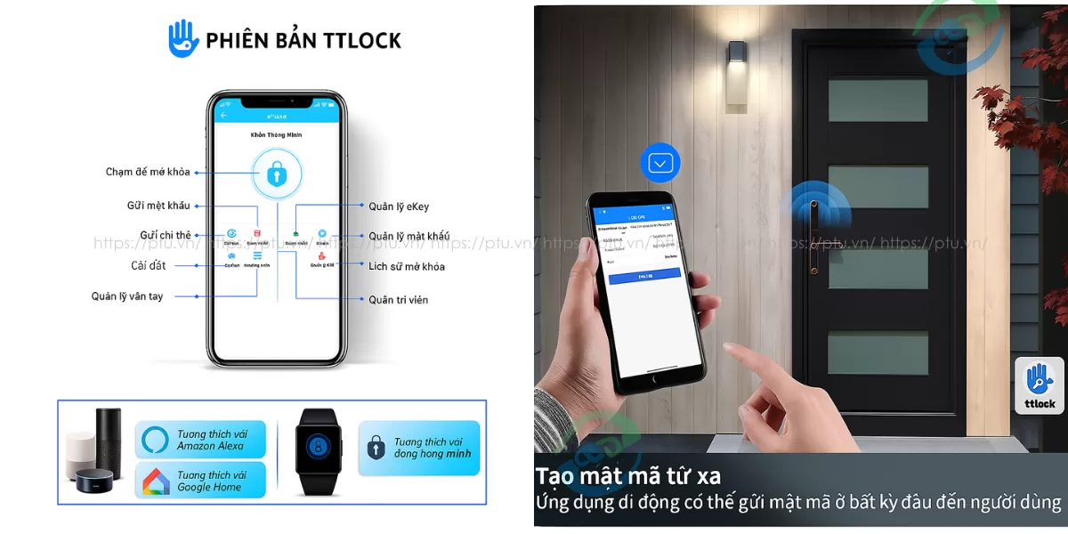 - Kiểu mở khóa : Vân tay + Mật mã + Thẻ từ + +Chìa cơ , app TTLOCK